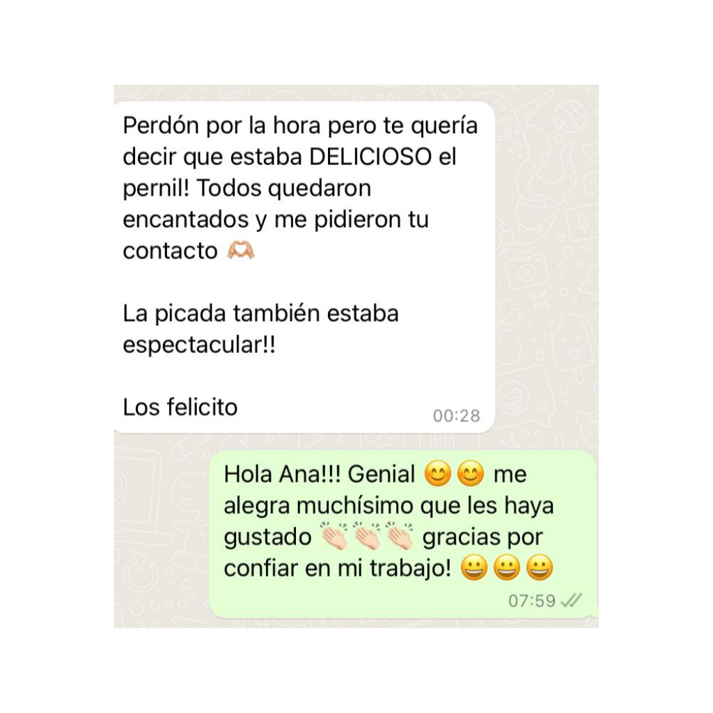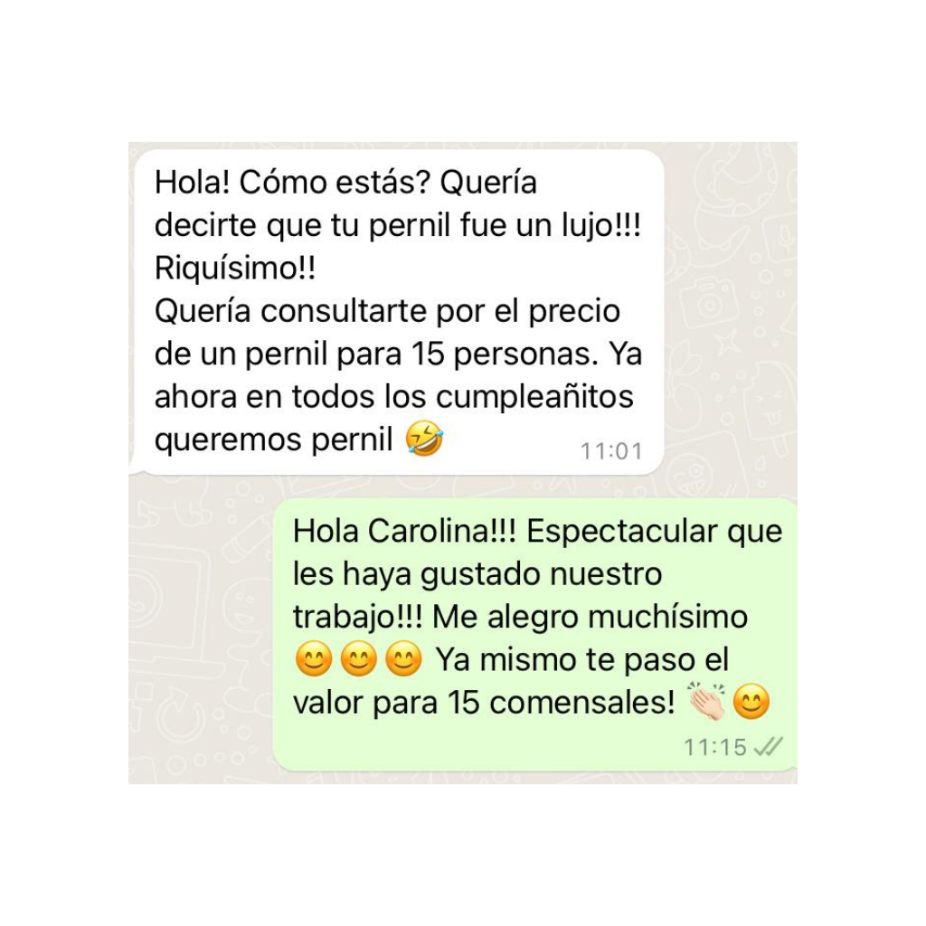 - nuestros perniles Siempre se elaboran el mismo día del evento (sin recalentar y logrando un producto que mantiene todos sus jugos).
