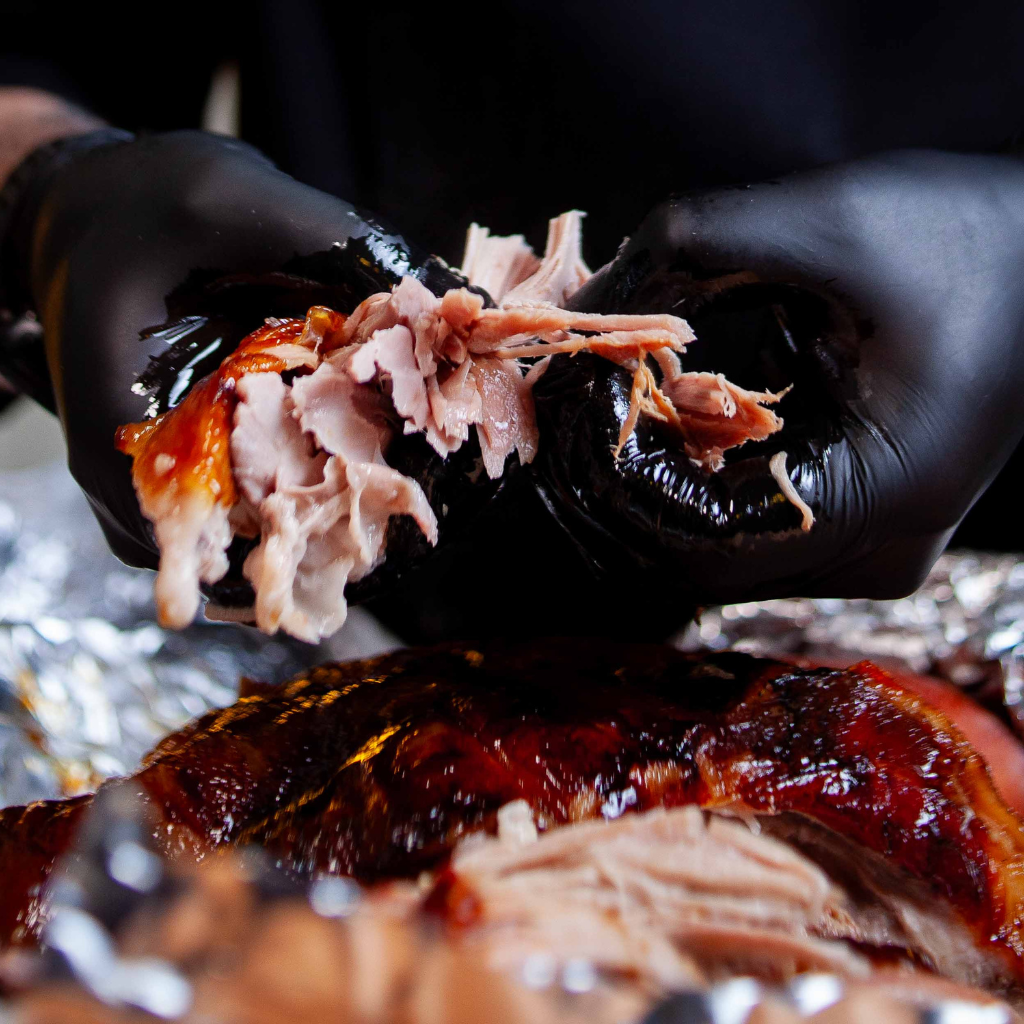 - Lo entregamos con bandeja y guantes de nitrilo para que lo puedan desmenuzar unos minutos antes de comer ¡y lucirse como un chef en el evento!